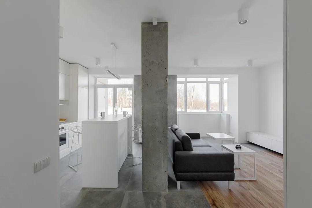 是一套极简风小户型公寓,房子的建筑面积为45平,屋主是一位理工男,在装修房子的时候,也只是用极简的白色搭配水泥质感来打造出这样一个舒适自然的居住空间。